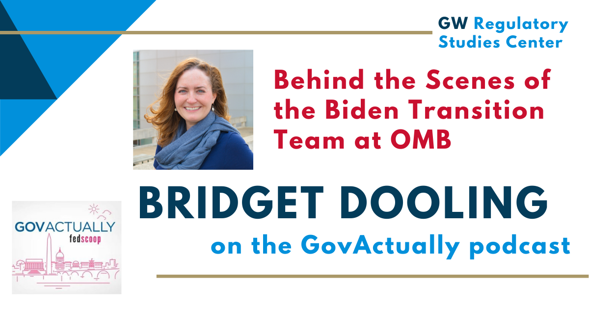 Two members of the OMB review team for the Biden transition, GW's Bridget Dooling and Martha Coven from Princeton University, join the GovActually podcast hosted by Dan Tangherlini and Danny Werfel to discuss what being part of such a team entails and what it was like leading a change in administrations during a pandemic.