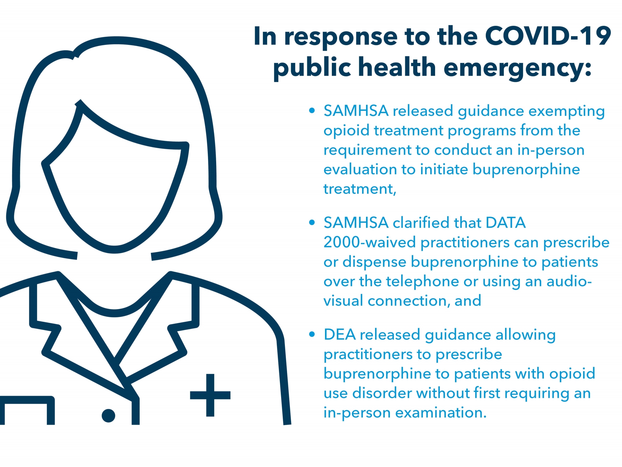 This report concludes that DEA and SAMHSA have the legal authority to extend the flexibilities granted during the COVID-19 public health emergency without additional authorization from Congress. DEA and SAMHSA have the authority to jointly issue regulations allowing practitioners to prescribe buprenorphine without first conducting an in-person medical evaluation. As an alternative, DEA can use its authority to establish a special registration for telemedicine program while SAMHSA issues an associated policy. As another alternative, SAMHSA and DEA can use the opioid-specific public health emergency declaration to offer a longer term, but not permanent, option to extend these flexibilities.