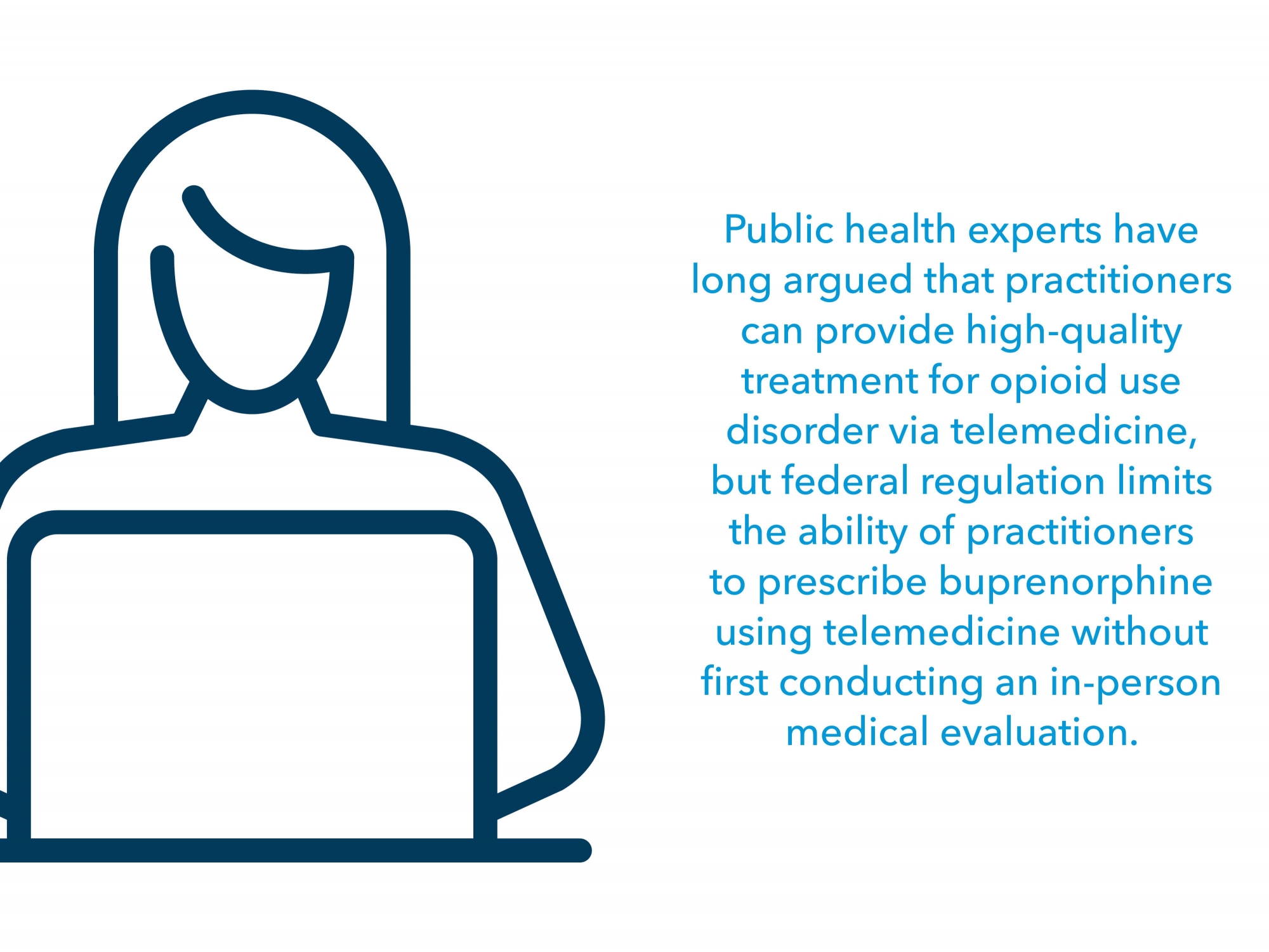 Federal regulators dramatically reduced the barriers to using telemedicine to treat opioid use disorder in response to the COVID-19 public health emergency. Public health experts have long argued that health care practitioners can provide high-quality treatment for opioid use disorder via telemedicine. Until now, federal regulation has limited the ability of practitioners to prescribe buprenorphine, one of the medications considered the gold standard for treatment of opioid use disorder, using telemedicine.